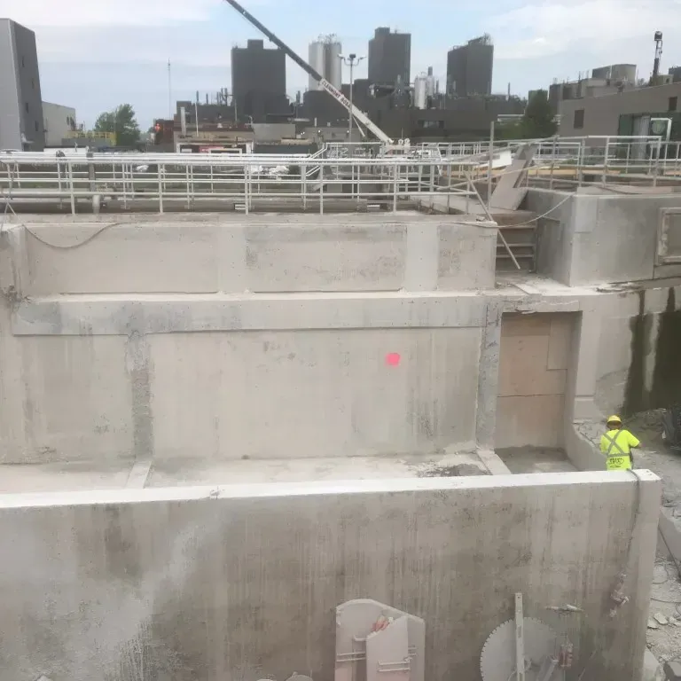 Using a pulley and diamond wire system, wire sawing is the most efficient way to remove large concrete structures and allows for mass concrete removal.